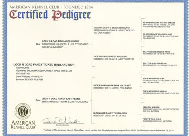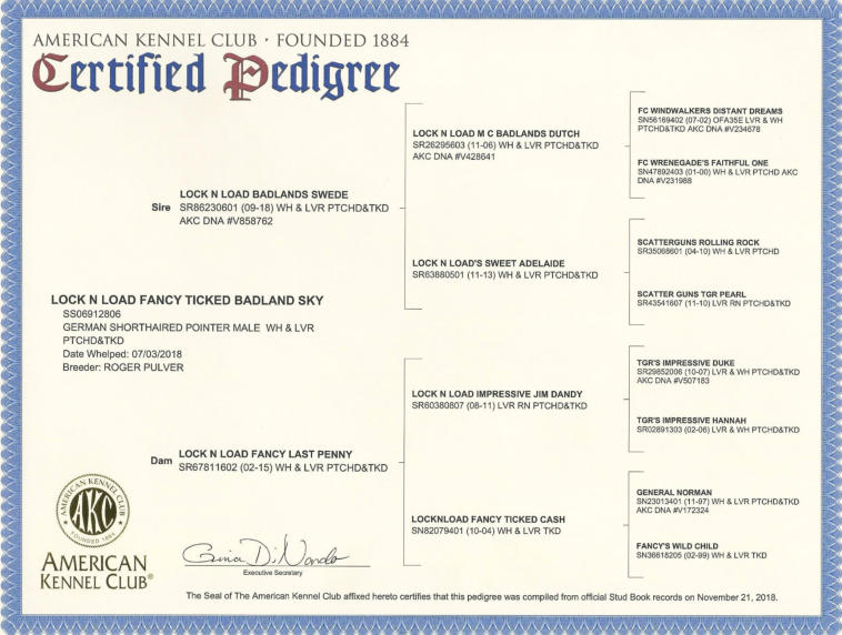 Sky Sky is an accumulation of the breeding that we have loved in our dogs. Using sound dogs as Cash and Dutch, we have gotten a nice male that can do it all. He pointed birds young and backed naturally. Truly the real package. Sky